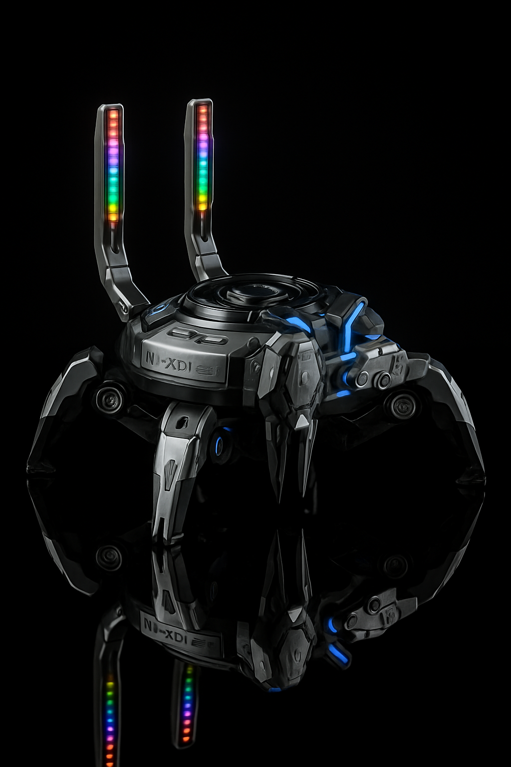 ¿Te imaginas tener en casa un robot estilo araña de combate con luces LED multicolor, reflejo elegante y acabados metálicos de lujo? ⚙️✨